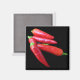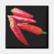 This magnet features brilliant scarlet red hot chilli peppers on a pure black background.