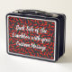 This is a standard metal lunchbox that appears to work just fine. We designed this box ourselves with an uploaded photo and custom text on the front and back. It looks absolutely beautiful except the front of the lunchbox is not centered like it shows in the photo. The print borders don't align with the inset flat part of the box where the preview photo online showed it perfectly centered in there. The back looks nice and centered though.