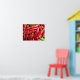 A pile of just picked fiery red hot chilli peppers are spread across this poster, ready for drying, pickling or good cooking!