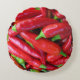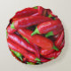 A pile of just picked fiery red hot chilli peppers are spread across this round throw pillow, ready for drying, pickling, salsa or good cooking!