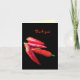 This thank you card features brilliant scarlet red hot chilli peppers on a pure black background. More peppers are inside. The text can be customised to suit your needs.