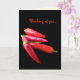 This friendship card features brilliant scarlet red hot chilli peppers on a pure black background. More peppers are inside. The text can be customised to suit your needs.
