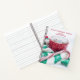 Personalised christmas planner notebook with a warm comforting Christmas photo. A hot cup of cocoa with marshmallows in a cute red and white polka dot mug. A striped candy cane resting on a green and white striped scarf covered in snow. Ahhh, a warm drink after coming in from the cold really hits the spot. A festive holiday photo. Warm Christmas Wishes written in a simple yet classic modern font.