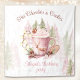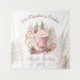 Christmas Birthday Party Backdrop Tapestry with hot chocolate mug, trees and gingerbread in pink, dark beige and green. Elegant and cute Christmas design for girls of all ages. :) Easily personalise the text. - Kate Eden Art