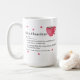 Cute hot chocolate dictionary definition style design created by me (not AI-generated). Features a pink mug filled with yummy hot chocolate with marshmallows and pink hearts sprinkled around. Design by Lavender Mint Graphics.