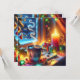 A pretty window Christmas scene with a steaming warm cup of hot chocolate, a lit candles on a snowy night. As the snow falls on this magical night, I wish you everything merry and bright. A sweet personalised holiday card to give you a warm and cosy vibe.