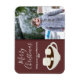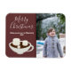 A Merry Christmas photo holiday card that’s magnetic featuring an illustration of hot chocolate with smiling marshmallows. The overall card has a brown and white colour scheme. The photo is a template that is meant to be swapped out for your own.