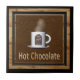A digital rendering of a cup of steaming hot chocolate on a wooden wall sign.