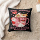 The pink cup itself is adorned with delightful snowflakes and features a grinning snowman, embodying the frosty yet cozy charm of winter. Atop the delicious hot cocoa, a generous swirl of whip cream is crowned with seasonal treats: a heart-shaped candy cane, a whimsical gingerbread star, and an abundance of red Christmas berries, making it a visual feast as much as a festive one. Surrounding this joyful imagery, pink stars, snowflakes, and hearts dance across the background, further enhancing the throw pillow’s retro groovy vibe.