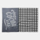 This chalkboard hot cocoa kitchen towel features chalk hand lettering that says "Hot Cocoa Bar" on a black background. The lettering features decorative swashes and ornamental swirls. The top of the towel is black and white check.