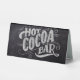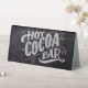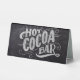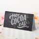 This chalkboard hot cocoa bar sign features chalk hand lettering that says "Hot Cocoa Bar" on a faux chalkboard background. The lettering features decorative swashes and ornamental swirls.