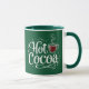 Elegant script Christmas coffee mug. The design features the text "Hot Cocoa" in white typography with white star, coffee mug and swirl accent elements. Makes for the best personalised gift for yourself, your friends, family members and even neighbours. We have 35+ more Christmas coffee mugs in our collection that you will definitely love. Please check it out and get the best Christmas gift with special wishes for your special people. Merry Christmas!