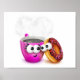 A cute design of a hot coffee and a doughnut together. Both the coffee cup and the doughnut have eyes and are staring at each other. This hot coffee and a doughnut design looks great on this Poster