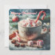 Hot Coffee cup with marshmallows- red candy cane Holiday Card