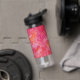 Hot Pink, Orange, and Golden Yellow swirl in this romantic yet modern look. The single stem of golden yellow acacia adorns the lower corner and centre back. Bright colour paints in an abstract swirl. The front celebrates the bride and groom, the reverse can be personalised for important family members or members of the wedding party.
