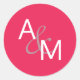 Put the finishing touch on your wedding invitations, party invites, save the dates and more with a custom monogram sticker seal that includes the bride and groom's initials with an ampersand character. Shown here in bold coral pink, this sticker is also available in other colours to match your colour scheme. This sticker is also a nice choice to add to wedding and party favours and give-aways.