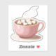 A steaming hot cup of cocoa with heart marshmallows for Valentine's Day.