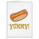 Share your love for hot dogs with this fun design with a hot dog and the word YUMMY.