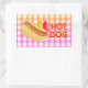 Hot Dog on Gingham Picnic Tablecloth w/ Condiments Rectangular Sticker