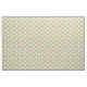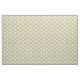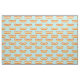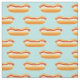 This fabric features a pattern of a delicious cartoon hot dog illustration. The hot dog has a tasty looking bun and there are both ketchup and mustard on top of the sausage.