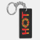 Hot with the letter O made of a flame circle with chilli peppers. Custom background colour. Custom text on back side.