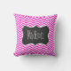 Hot Magenta Chevron Stripes; Retro Chalkboard look Cushion