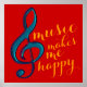 Musical note with text: music makes me happy