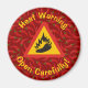 Triangle warning sign with a pepper and flame silhouette. Seamless pattern background. Two custom text fields on circle.