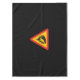 Triangle warning sign with a pepper and flame silhouette on black background.