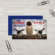 Stylised image of a legendary two piston engines aircraft and a funny template text. Name and job title on the front, business title, motto and contact info on the back. You can change everything: the image and all the texts to make your personal, one-of-a-kind and beautiful business card. Have fun!