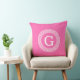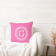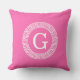 Hot Pink2 Wht Greek Key Rnd Frame Initial Monogram Cushion