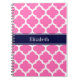 Hot Pink2 Wht Moroccan #5 Navy Blue Name Monogram Notebook