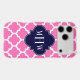 Hot Pink #2 and White Moroccan Quatrefoil Trellis Pattern #5, Navy Blue Quatrefoil 3 Initial Monogram =======