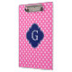 Hot Pink #2 Wht Polka Dot Navy Quatrefoil Monogram Clipboard
