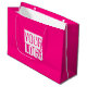 Large Gift Bag in hot pink solid colour background and a bold cover logo . Personalise it now . Modern and trendy design by Alma Wad .It comes in different sizes .