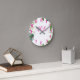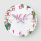 Hot Pink ALOHA Tropical Leaves Botanical Round Clock