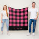 Hot Pink and Black Buffalo Check Monogram Fleece Blanket