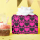 A wrapping paper built with a hot pink and black chequered pattern with hearts. Customise the black background colour among several options.