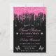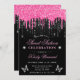 Hot Pink and Black Dripping Glitter Sweet 16 Invitation