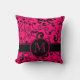 Hot Pink and Black Filigree Scroll with Monogram Cushion