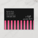 Gift Certificate - Beautiful upscale design featuring a pink stripe design pattern on a rich black background. Makes a great gift certificate for beauty salons, spas, cosmetologists, nail salons, dance studios, boutiques, designers, hair and fashion stylists, retail professionals, apparel shops, etc... ⭐This Product is 100% Customisable. Graphics and text can be deleted, moved, resized, changed around, rotated, etc... ⭐99% of my designs in my store are done in layers. This makes it easy for you to resize and move the graphics and text around so that it will fit each product perfectly. ⭐ (Please be sure to resize or move graphics if needed before ordering) You can also "TRANSFER DESIGN" on other Zazzle products and adjust the design to fit most of Zazzle items. (button is down on the right side of the page) Some of the text graphics have ready to fill in the box(es) or you can Click on the "CUSTOMIZE" button to add, move, delete, resize, background colour or change any of the font or graphics. The design is made with high resolution vector and/or digital graphics for a professional print. ⭐NOTE: (THIS IS A PRINT. All zazzle product designs are "prints" unless otherwise stated under "About This Product" area) The design will be printed EXACTLY like you see it on the screen and on the product...so please make sure when you do your changes on the resizing of any of the graphics or text that it fits in the areas correctly and that your spelling and wording is how you like it to be in size, colour and font. If you have any questions about the "DESIGN ONLY" or need help please contact me at my direct email - siggyscott@comcast.net or visit my store link: http://www.zazzle.com/store/designsbydonnasiggy (Copy and Paste) I'll be happy to help. ⭐ ALL OTHER QUESTIONS (such as the shipping, a refund, the printing is incorrect, or the product itself, etc...) PLEASE CONTACT ZAZZLE OR THE MAKER ⭐DIRECTLY⭐. Thank you for the support and stopping by my store - DesignsbyDonnaSiggy. © Donna Siegrist⭐⭐⭐ ZAZZLE promises 100% satisfaction.