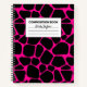 Black and white "Composition Book" rectangle overlay over a customisable modern style leopard skin graphic design.