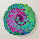 Hot Pink and Blue Groovy Abstract Retro Swirl Round Cushion