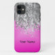 Easily personalise this chic elegant girly faux silver metallic glitter sparkle bling and hot pink satin look background with your custom text, name or monogram initials to make a unique sophisticated personalised gift. Click Customise to adjust the text / font size or style. PLEASE NOTE the silver is not metallic, sparkly, shiny or glittery. Visit the CUSTOMPATTERNZ STORE for matching products and more customisable patterned gifts.