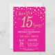 Hot Pink and Gold 15th Birthday Diamond Invitation