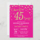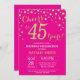 Hot Pink and Gold 45th Birthday Diamond Invitation