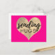 Hot Pink and Gold Heart Sending Hugs Postcard