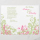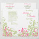 The text on this hot pink and green abstract floral wedding program is fully customisable. It is intended to be folded down the middle. To change the text, use the personalise option. For more extensive text changes, such as changes to the font, font colour, font size, background colour, or text placement, use the customise option. Also, once your text is finalised, if you need to move it around a bit, you can do that using the customise option. This hot pink and green abstract floral special occasion program is currently customised as a wedding program, but it would work well as a program for a birthday celebration (sweet 16), wedding shower, or possibly high school graduation celebration as well. Really, this would even make a really nice church bulletin with changes to the text. Let your imagination lead you.