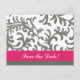 Hot Pink and Grey Floral Pattern Announcement Postcard