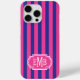 Hot Pink and Navy Blue Monogrammed Stripes Case-Mate iPhone Case